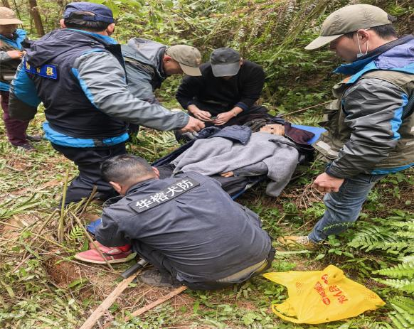 随着搜救时间的推移,气温逐渐降低,山林间雾气渐浓,能见度进一步下降。救援小队克服严寒与疲劳,持续扩大搜救范围。1月6日上午10时许,搜救犬突然在一处陡坡下方表现出强烈的兴奋反应,不停吠叫示警。训导员立即示意救援人员靠拢,最终在陡坡下的一处灌木丛中发现失联男子掉在水沟里面,头朝下卡在水沟中间无法动弹。此时男子意识尚清醒,但因长时间受冻,身体已出现轻微失温,无法自主行动。救援人员立即将携带的保暖衣物裹在男子身上,喂食温水和能量食品,进行简单的紧急保暖处置。待男子身体状态稍作恢复后,救援人员合力将其抬上担架,安全转运至山下,移交家属和医护人员。当家属见到安然无恙的老人时,激动得热泪盈眶,紧紧握住救援人员的手连连道谢:“太感谢你们了!要是再晚一点找到,真不敢想象会发生什么事,你们的训练犬真是我们的救星啊!”